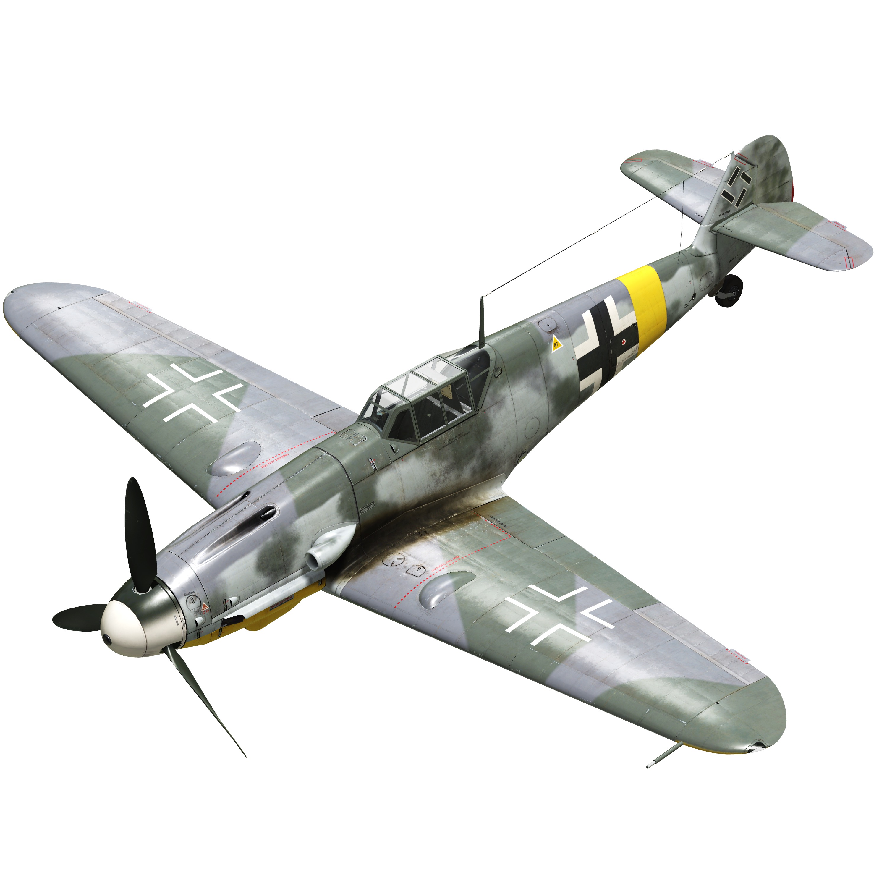 Configuración del motor DB605A con los ajustes de 1943, que permitían incrementar el tiempo en modo emergencia (2800 rpm, 1,42 ata) hasta los 3 minutos.