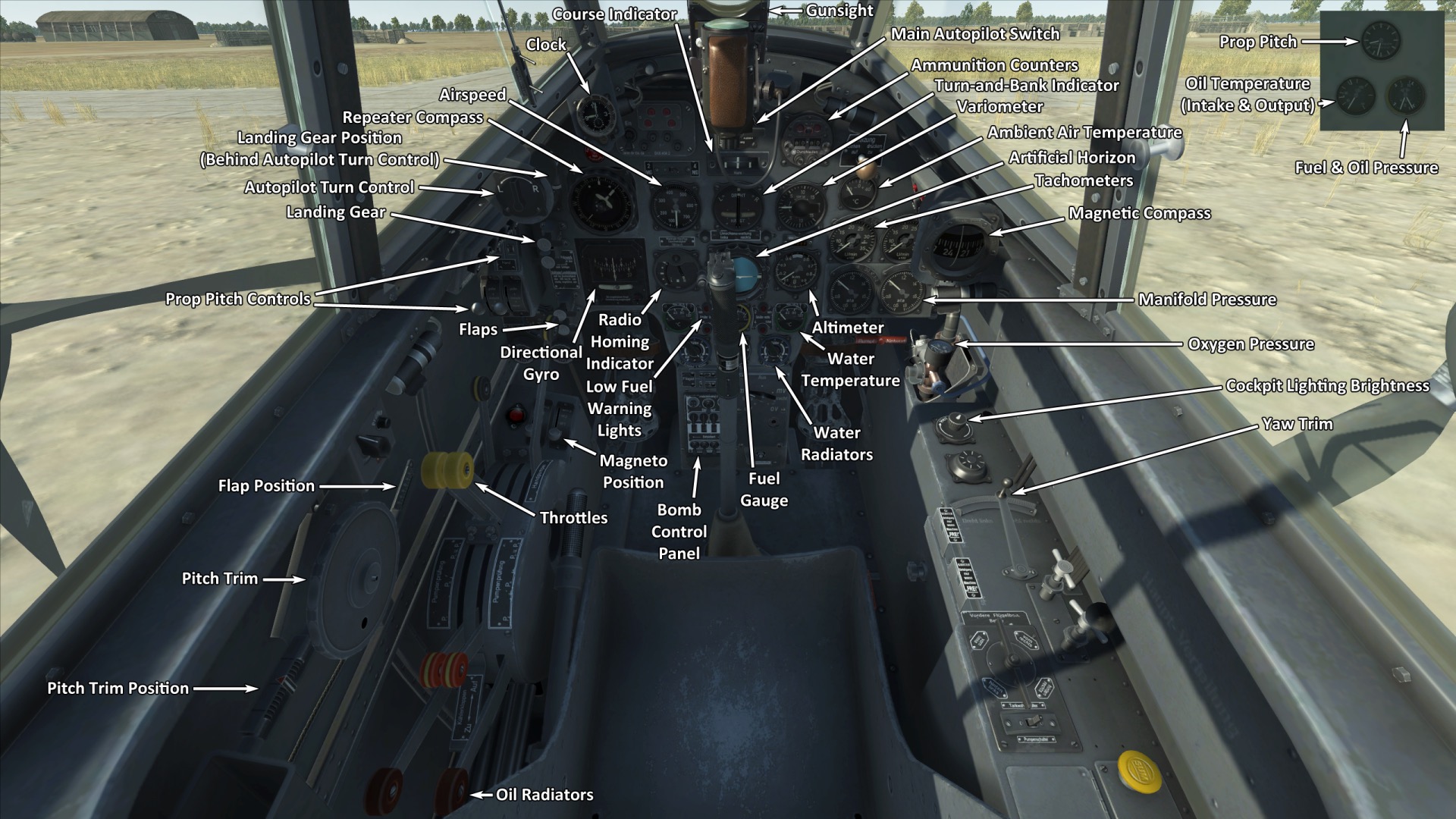 ——飞机的发动机系统自动化程度较高,实际上,要控制速度只要使用油门杆即可。正常飞行中无需手动调整发动机的转速、混合比以及增压器的档位。