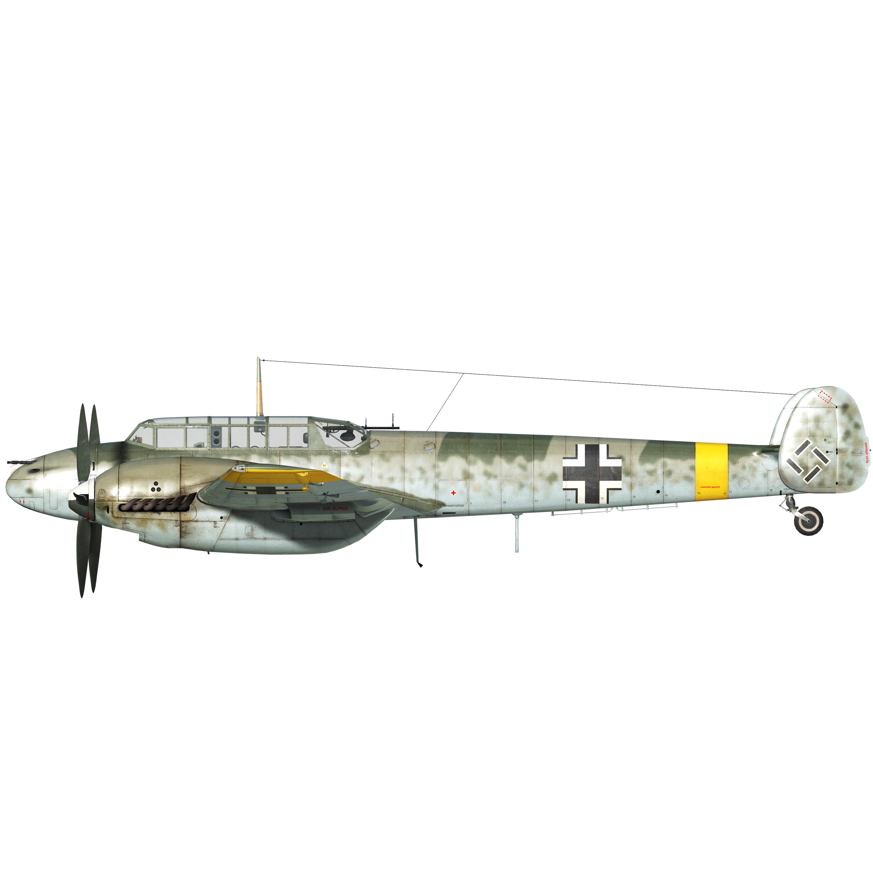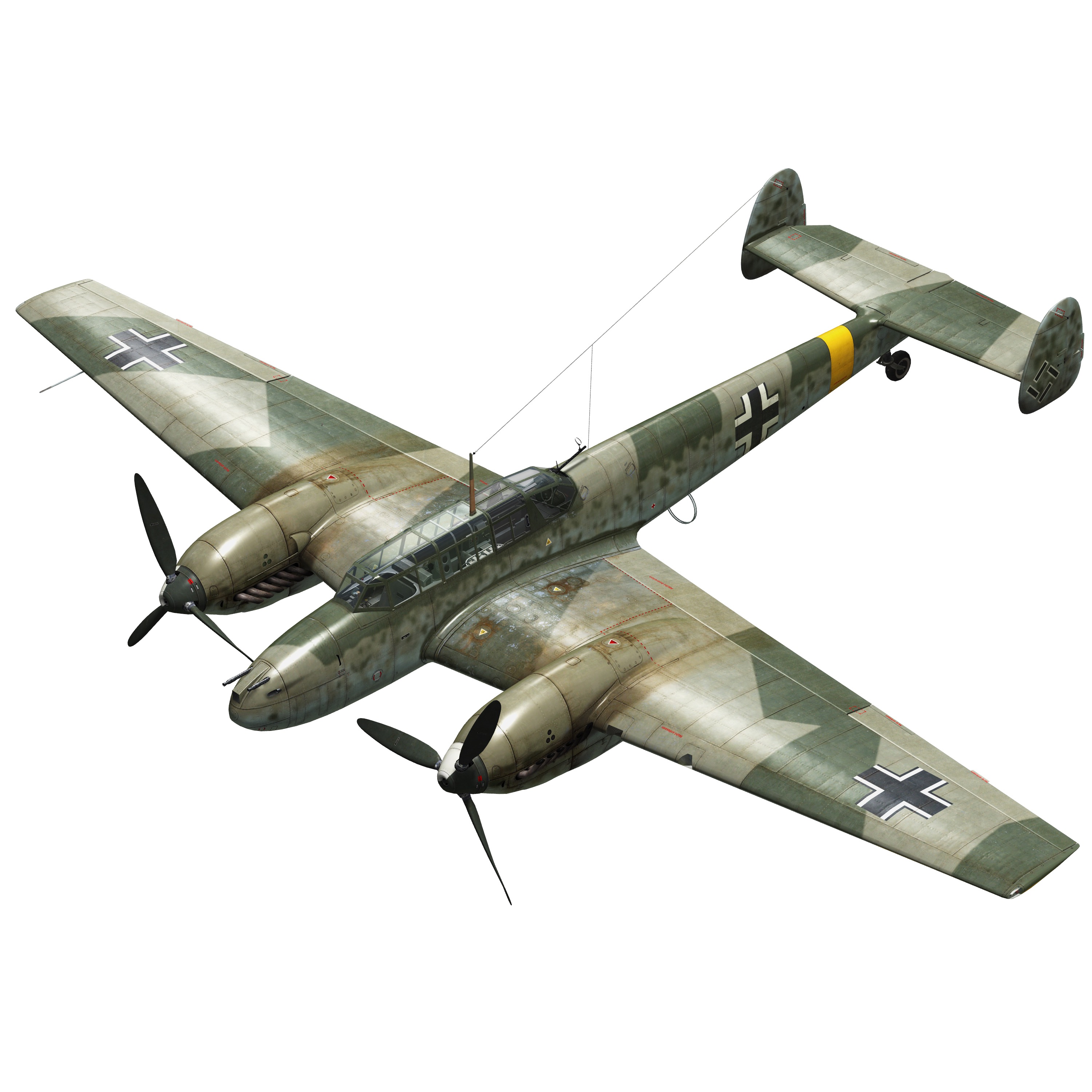 4 x 7.92mm机枪”MG 17”,1000发,1200发/分,机头安装