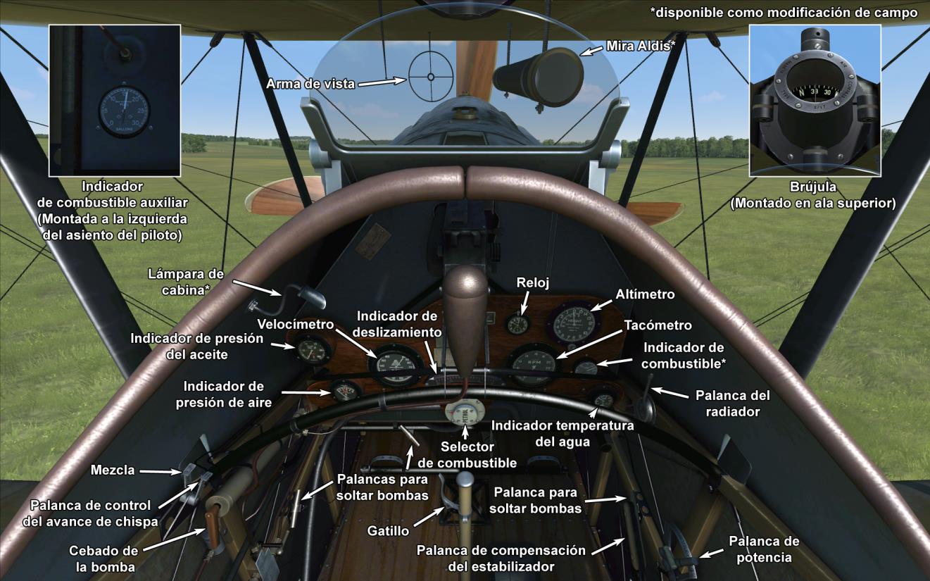 Dos ametralladoras Lewis sincronizadas adicionales de posición variable montadas sobre el ala superior.
