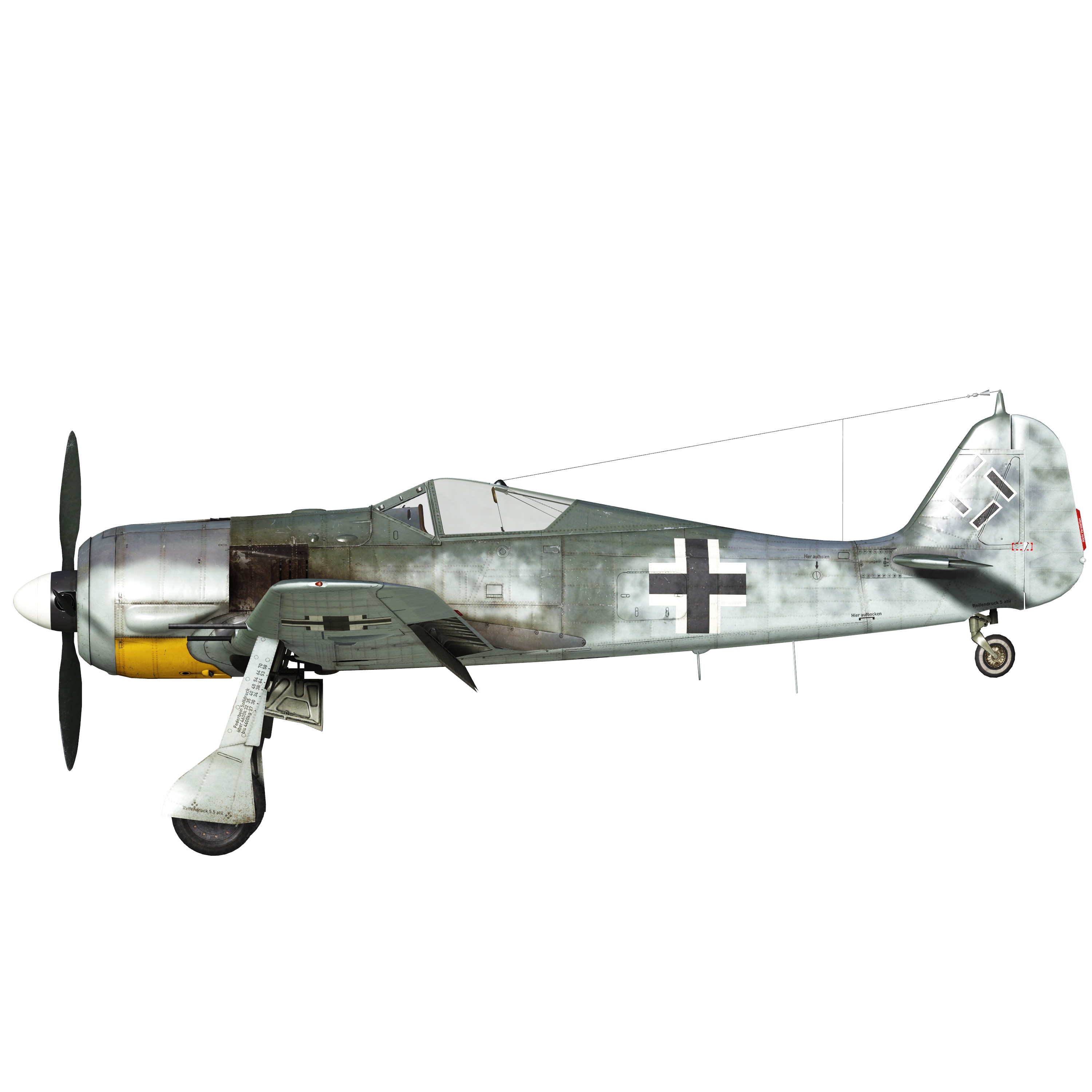 Fw 190 G-3 strike modification includes 250 kg underwing bomb racks, underbelly ETC 501 rack, 1.65 ATA modified engine (C3 system) and removes the outer MG151/20 wing-mounted guns and MG-17 machineguns.