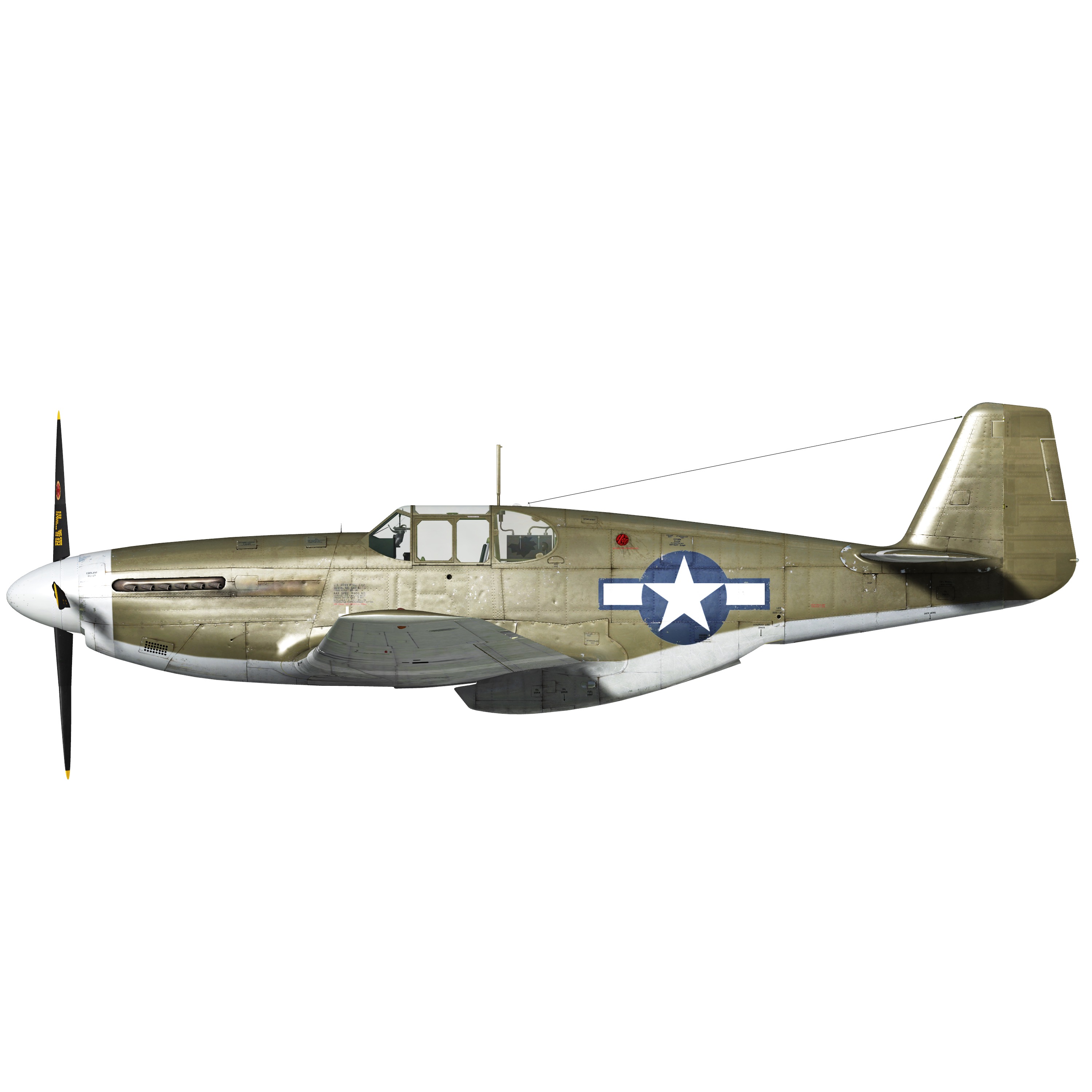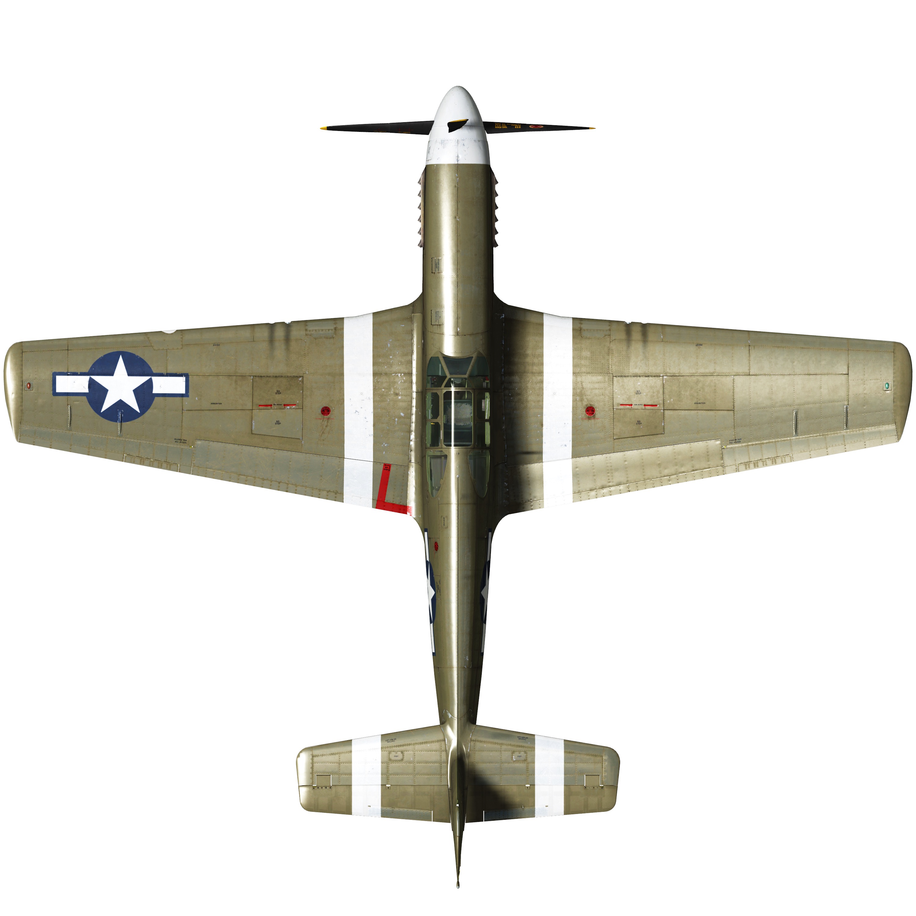 4 ametralladoras de 12,7 mm «ANM2 .50» montadas en las alas, 850 balas por minuto, 350 balas para las más interiores y 280 balas para las más exteriores