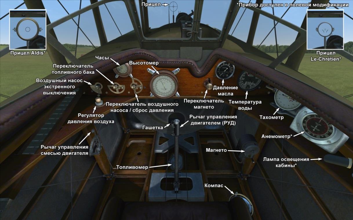 Установленный над верхним крылом пулемёт Lewis с изменяемым углом установки.
