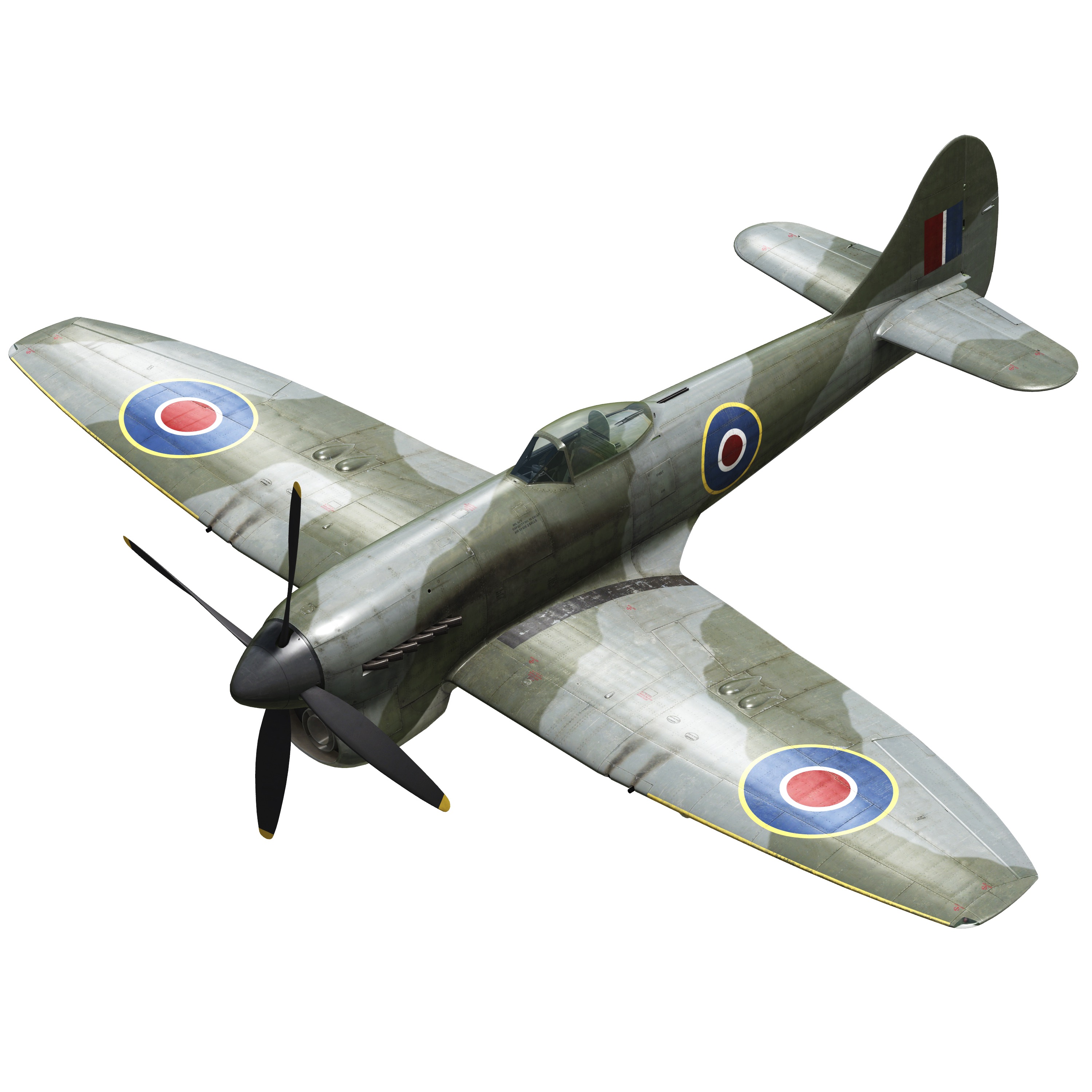 4 mitrailleuse Hispano Mk.V de 20 mm, 150 coups, 650 coups par minute, dans l\aile