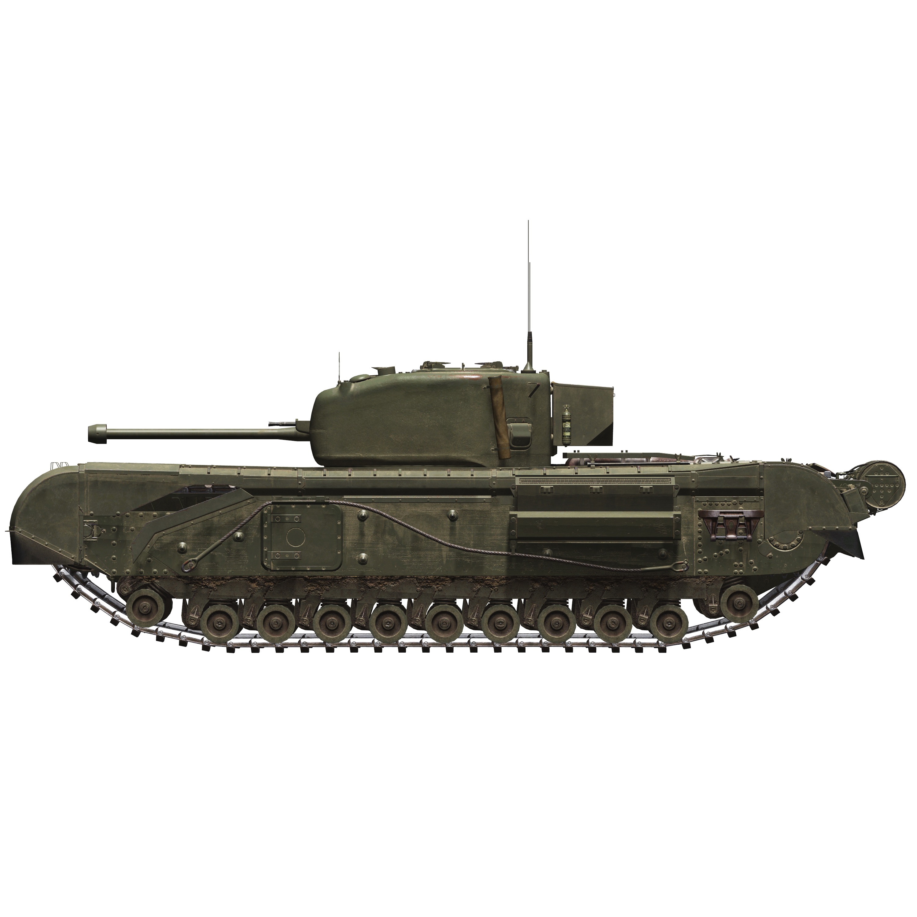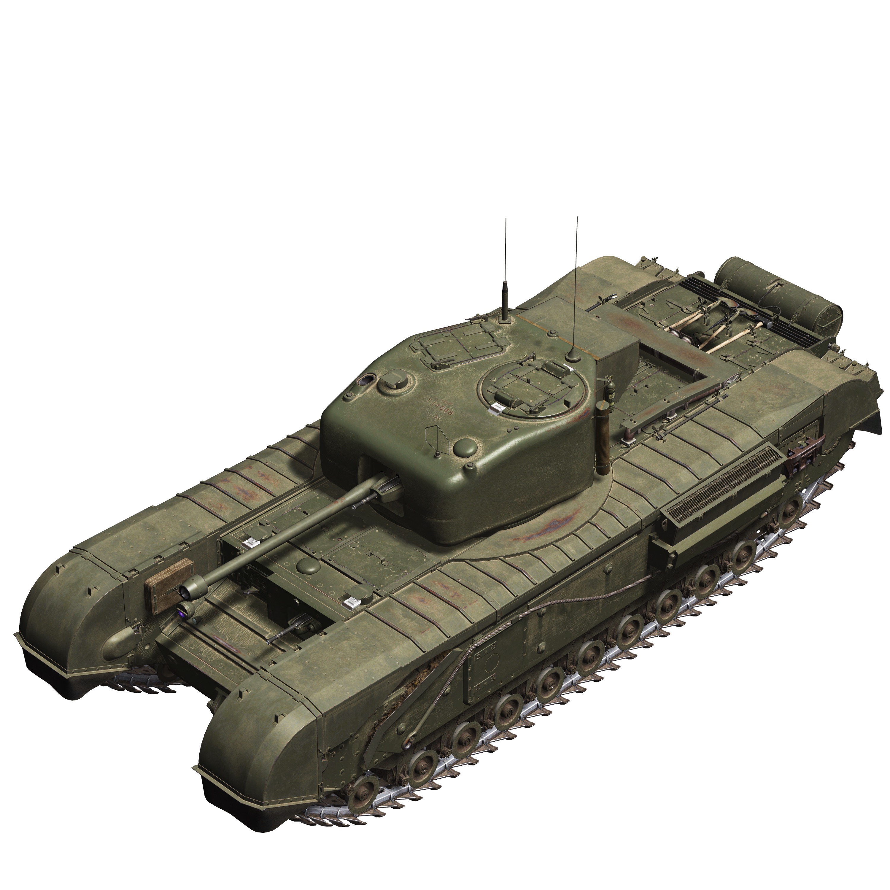 The Churchill tank belonged to the class of infantry tanks developed by the British Army. According to this classification, the Churchill had low mobility and hardly the most powerful weaponry, but it was protected with powerful armor, and thus belonged to the class of heavy tanks. The tank was produced in England throughout the war years and was one of the most numerous armored vehicles in His Majesty’s armed forces. The model featured in the game was produced by the Leyland factory.