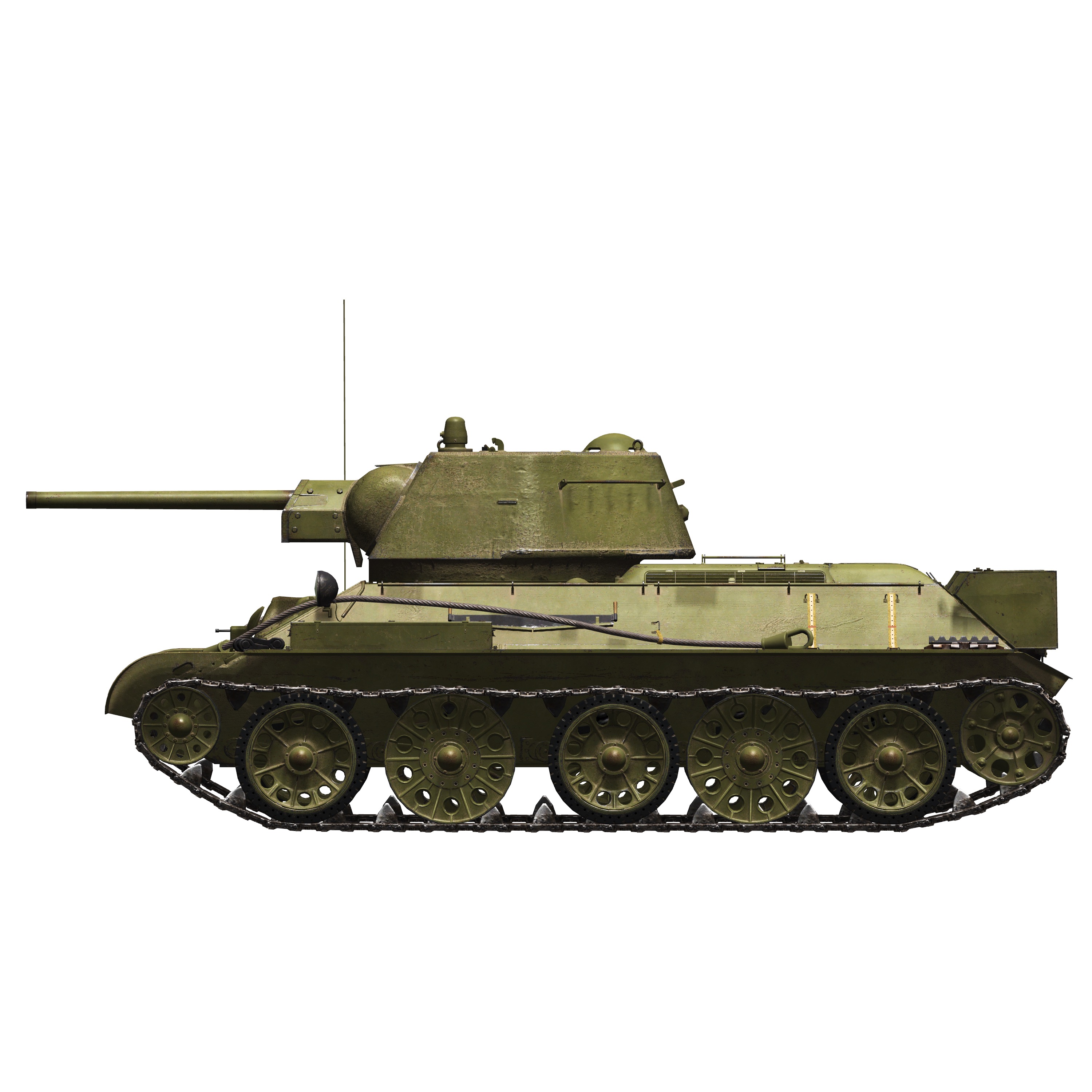 T-34 built by F.E. Dzerzhinsky Ural Tank Factory #183 (UTZ) in Spring 1943. These tanks had distinct hexagon cast turrets with sharp bilges, mixed cast (with internal dampeners) and rubber-coated wheels, and external fuel tanks at the rear. Rubber-coated wheels were introduced for better cushioning, but because of the rubber shortage in the USSR, they were mixed with older type wheels.